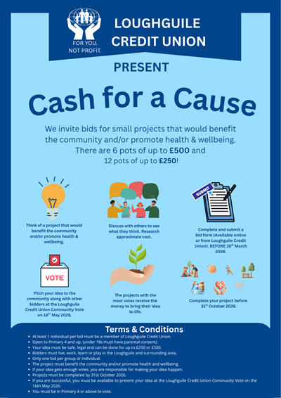 Loughguile Credit Union presents Cash for a Cause.